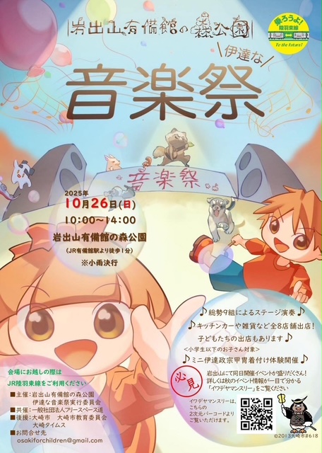 大崎市岩出山有備館の森公園で伊達な音楽祭が催されるようです🎷🎷🎷